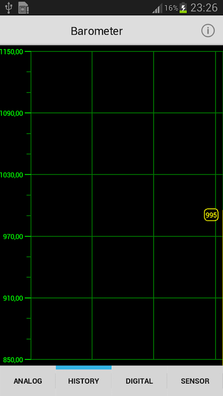 バロメーターは、現在の空気圧を表示します。この目的のために、携帯電話やタブレットの空気圧センサが使用されます。