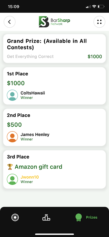 ライブスポーツ予測ゲームを自宅でプレイするか、お住まいの地域の参加バーに行ってゲームに参加して賞品を獲得してください。そして、各ゲームで提供される賞品に関係なく、どのゲームでも常に $1000 の大賞が用意されています。何よりも、完全に無料です。