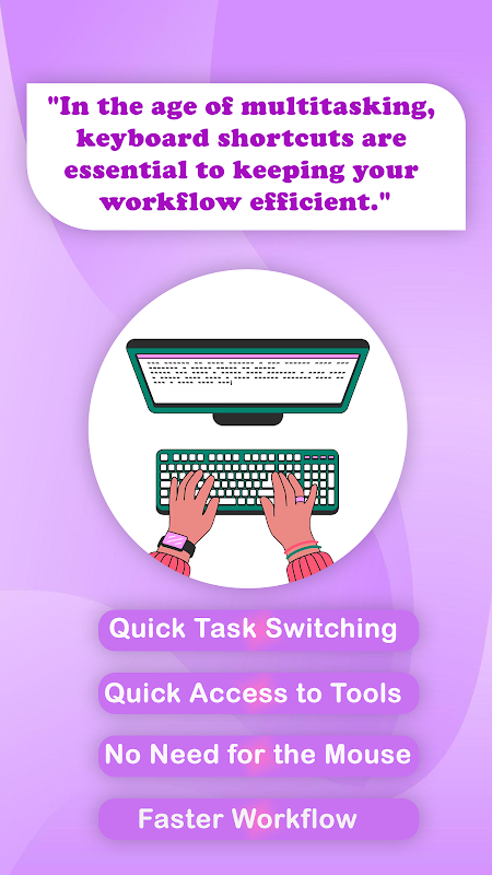 コンピューターのキーボードショートカットキーは、マウスを使用してウィンドウをタップすることで通常行うさまざまな指示を実行するための、キーボードを介したショートカット指示です。ショートカットを使用すると、マウスを使用せずに作業し、キーボードのみを使用してコンピューター操作の速度を上げることができます。 PCアプリのこれらのショートカットキーは、コンピューターのすべてのショートカットキーを学習するのに役立ちます。私たちのアプリは、コンピューター上のさまざまなアプリケーションにさまざまなショートカットキーを提供します。キーボードショートカットアプリケーションのようなこの学習コンピュータショートカットキーは、Microsoft Officeのすべてのソフトウェアショートカットキーを学習するのに役立ちます。すべてのコンピュータショートカットには簡単な説明が含まれており、これは最高のMicrosoftOfficeショートカットキーアプリです。