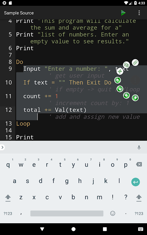お使いのデバイスにBASICコードを書いてください!コードスニペットの学習とテストに最適です。