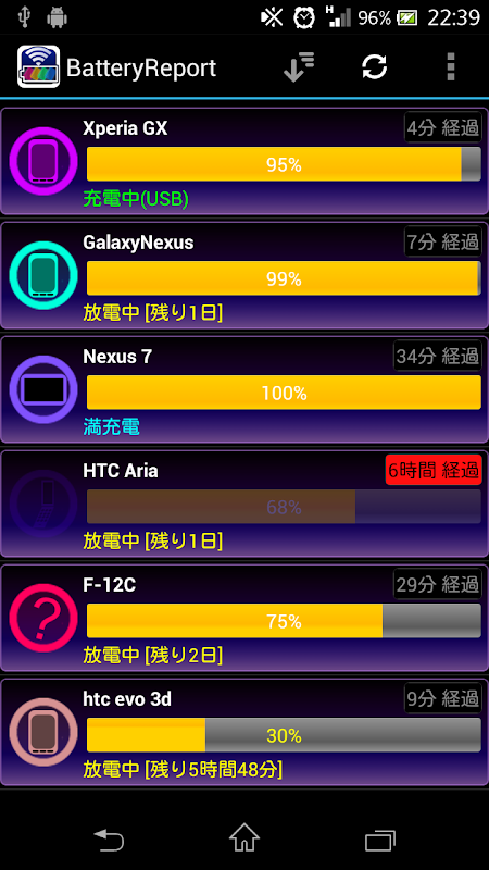 複数端末のバッテリーを一括管理できるAndroidアプリ「Battery Report」 - ITmedia Mobile