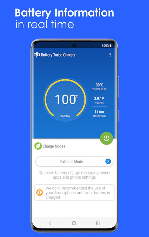 バッテリーターボ充電器は完全に自動化されたアプリケーションであり、電話を停止またはプラグを抜いたり、動作を停止したりすると、すべてのサービスが便利に復元されます。