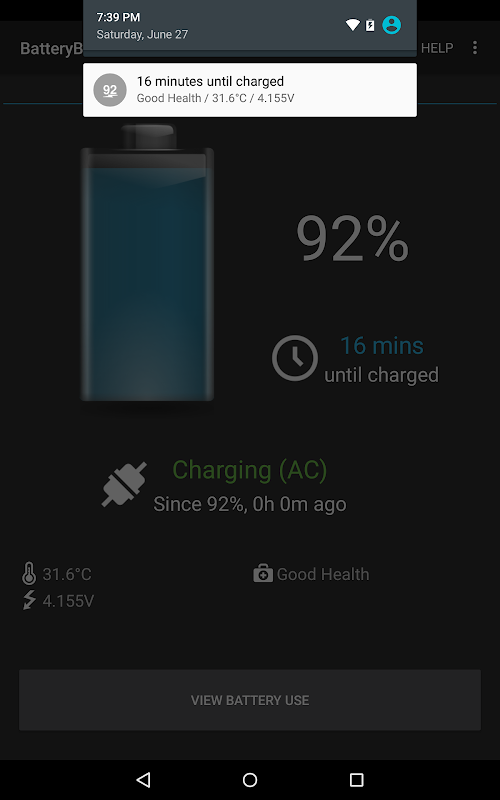 BatteryBotモニターとあなたは、温度、健康、電圧、および通知領域にプラグイン/アンプラグからの時間を残しているどのくらいの時間で、あなたのステータスバーにアイコンとしてお使いのバッテリーの充電レベル(パーセント)を示しています。それは今も1x1のアプリのウィジェットを持っています。 Pro版はまた、ユーザが設定できるアラーム、ログ、mAの電流情報、および大規模な(4×1)ウィジェットを持っています。