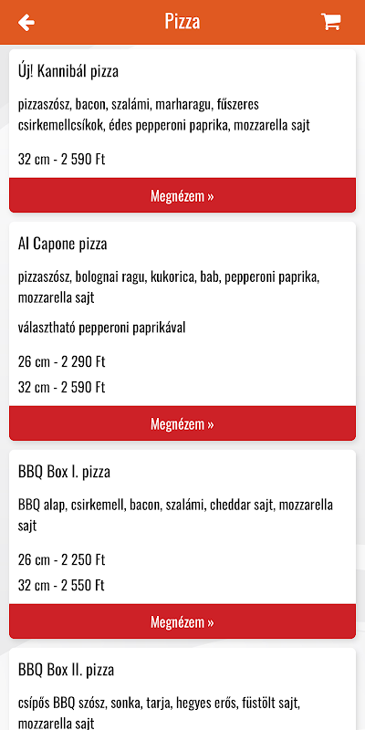 GödöllőのBB Box Kitchenのメニューでは、さまざまな料理を提供しています。 3サイズのピザをはじめ、ハンバーガー、魚料理、ボリュームたっぷりの盛り合わせなど、種類豊富に取り揃えております。ボリュームたっぷりのランチやディナーを食べたいときは、アプリから快適に注文してください。