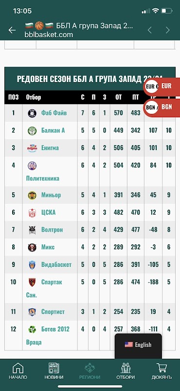 ブルガリアバスケットボールリーグの公式モバイルアプリケーション