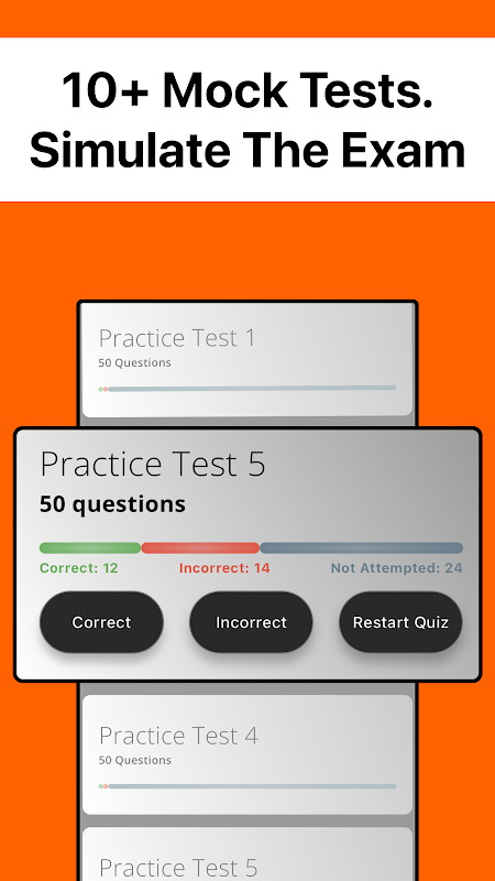 ◆ 10回以上のリアルな模擬試験:実際のICBC学習者試験の形式と難易度をシミュレートした模擬試験を受け、試験当日に向けて自信をつけましょう。無制限の再受験が可能なので、本番に備えるまで練習を続けることができます。