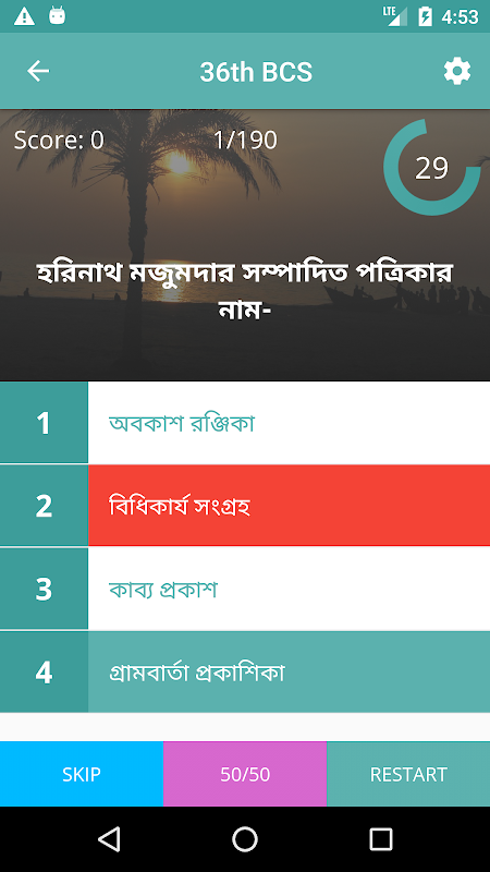 পরীক্ষায়অংশগ্রহণকরারপরআপনারমোবাইলেভেসেআসতেথাকবেএকটিকরেপ্রশ্নসাথেসাথেসময়গণনাশুরুহয়েযাবে。 প্রতিটিসঠিকউত্তরেরজন্যপাবেন২নাম্বার、আরএকটিভুলউত্তরেকাটাযাবে1নাম্বার。 কোনভুলউত্তরদিলেসেটিরসঠিকউত্তরটিওজানতেপারবেনসাথেসাথে。 পরীক্ষাশেষেমোটনাম্বারপেলেনসেটাজানতেপারবেন。 এভাবেআপনি10তমBCSথেকেশুরুকরে38তমBCSএরকুইজেঅংশগ্রহণকরতেপারবেন。
