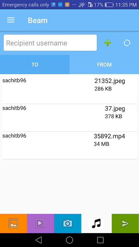 Beam allows you to send any of your files onto any device that also has the app. Whether you want to transfer photos from your phone to your computer, or send a friend a large movie, you can send anything instantly. Beam also syncs with your contacts so all you need is a phone number and you can transfer files of any size to all your friends!