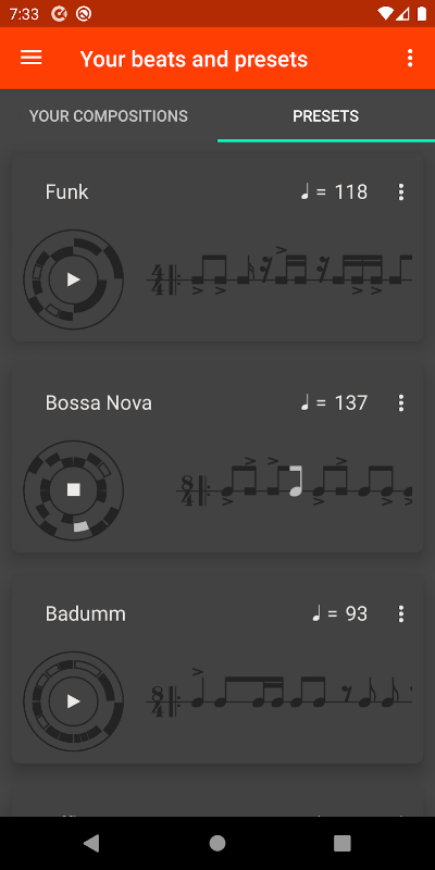 初心者とプロのミュージシャンの両方のためのスマートな視覚化を備えた、無料で使いやすい、機能豊富でプログラム可能なメトロノームとインタラクティブなリズムトレーナーアプリ。
