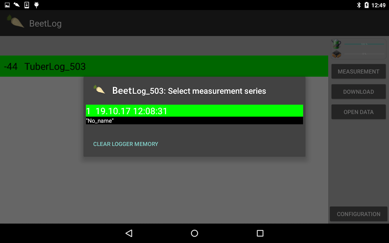 Die App dient der Durchführung und Auswertung von Messungen mit der elektronischen Rübe BeetLog. Sie bietet folgende Funktionen: