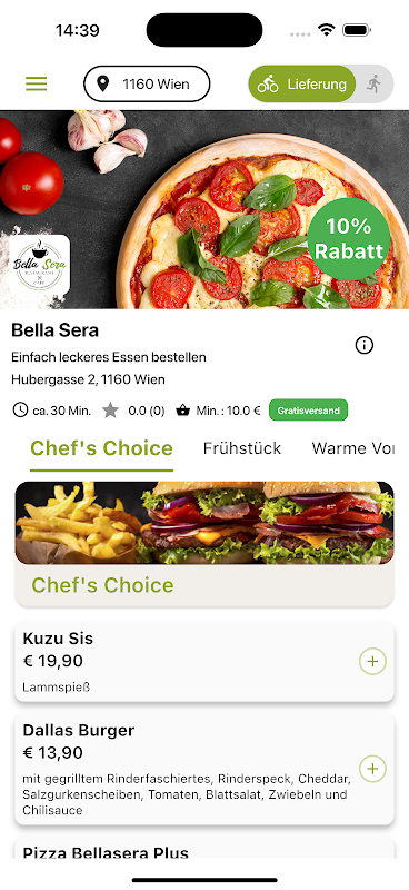 Essen bestellen bei Bella Sera Wien. Bestelle Pizza, Burger, Schnitzel, Pasta und weitere herzhafte Speisen. Vielen Dank, dass Du Bella Sera APP verwendest.