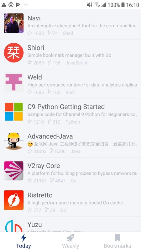 Best Github is a simple tool using github api to help developers to keep them up-to-date. Visit everyday to follow what is in trend and bookmark your favorite repos.