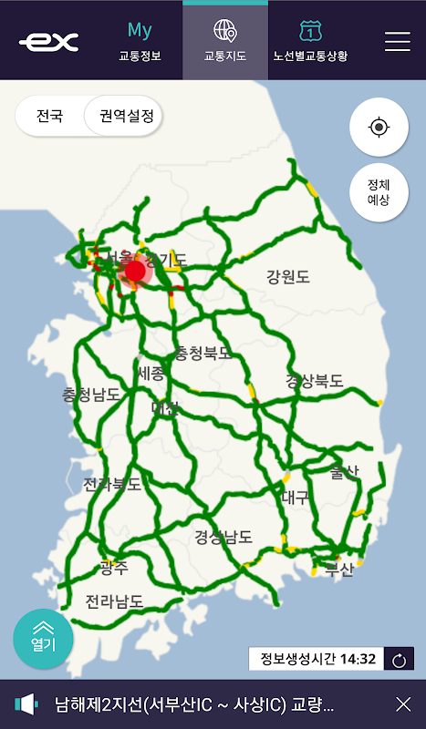 (beta)道路交通情報は、韓国道路公社でリアルタイムで提供する道路交通情報WebGIS版です。