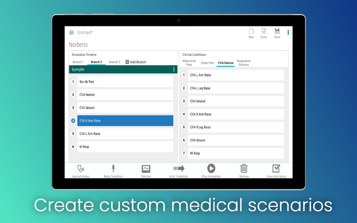 PerSim™コントローラは、PerSim™のすべての機能を制御するための使いやすいインターフェースです。これには、研修生のパフォーマンス情報の記録、Hololensライブストリーミング、トリートメントの適用、PerSim™Vitals Monitorの接続、PerSim™の使用、ユーザーフレンドリーなシナリオエディタによる数千のカスタムシナリオの作成などが含まれます。