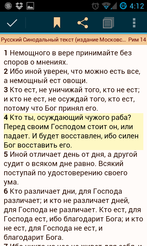 This Bible app has two translations by default: Synodal Bible (Published by Moscow Patriarchate) and King James Version. You can download other Bible translations, books, commentaries. All you need to do is to visit following web resources and download the modules you want.