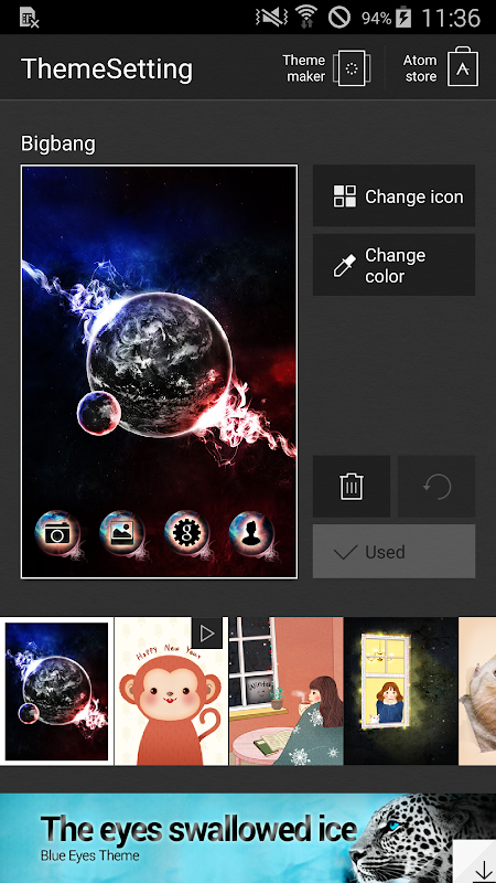- ギャラリーに持っている写真をアトムのアイコンと組み合わせてテーマとして使用可能