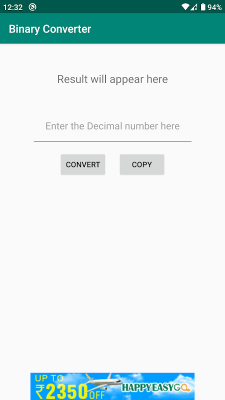 このアプリは、10進数を2進数に変換します。結果をコピーすることもできます。