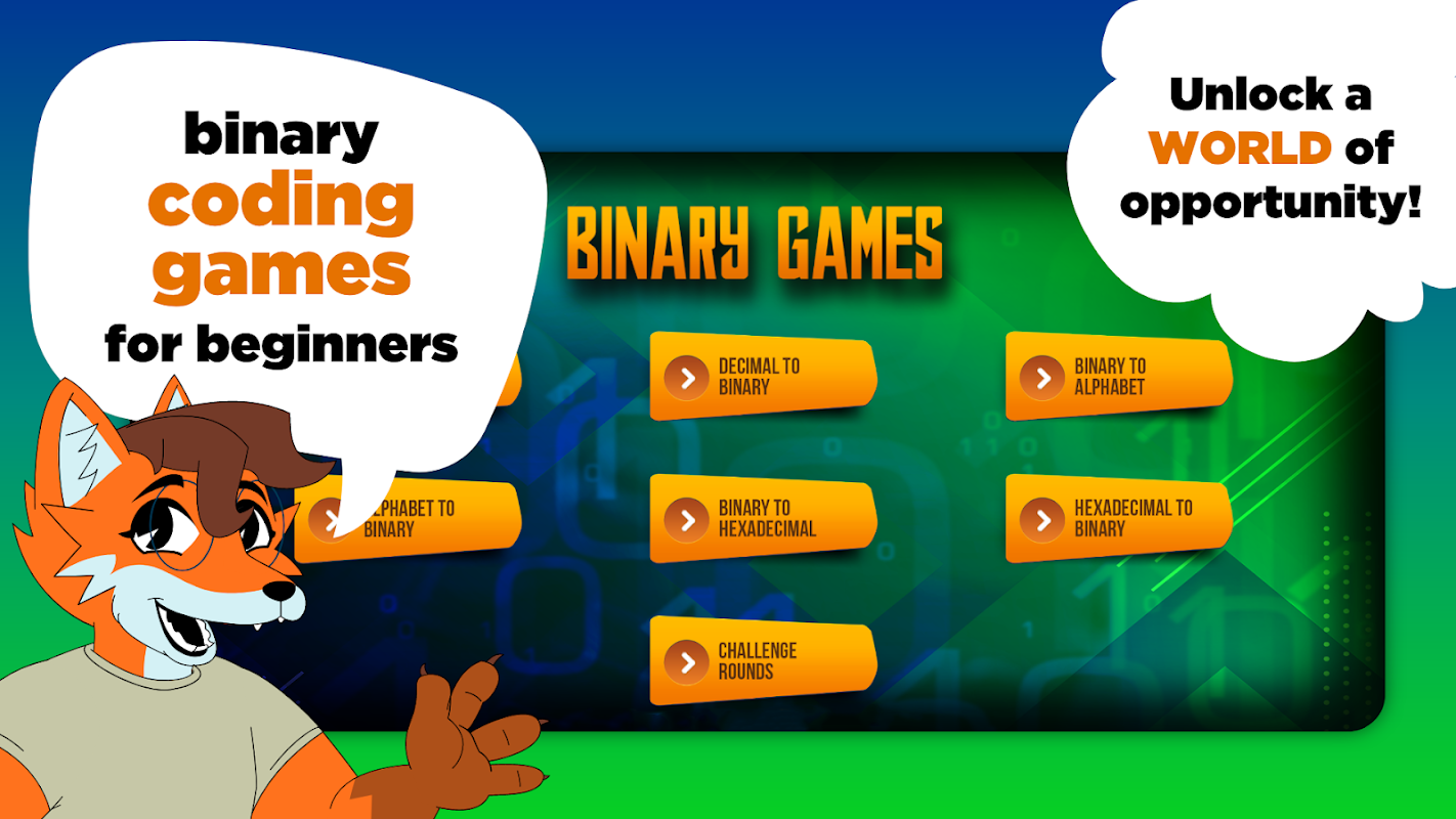 With Binary Games, you can ignite your understanding of computers! Learn the language behind how your computer, tablet or phone works and teach yourself the foundations of coding skills!