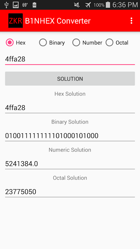 このアプリは、2進数、8進数、16進数、および数値を変換します.