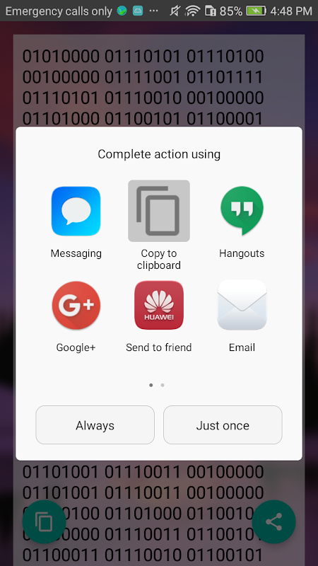 Binary to text converter is the best way to encode your confidential messages and share it with others so that they can decode it later with this binary translator app. It has copy button to easily copy and forward to anyone. You can share it as well using sharing the feature of Binary to text converter.