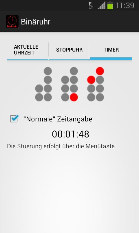 Diese App zeigt Dir die aktuelle Uhrzeit wie eine Binäruhr an. Zusätzlich kann die Uhrzeit auch im normalen Format angezeigt werden.