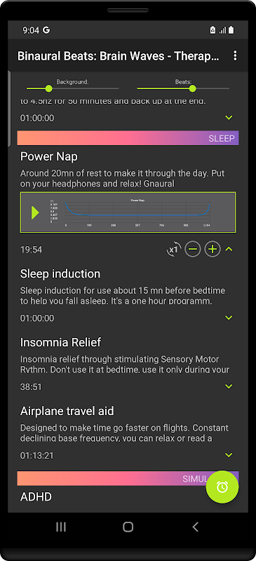 睡眠、瞑想、集中力と注意力、より速い学習、痛みの軽減、創造性、不安の軽減など、さまざまな種類のプリセットを開発しました。