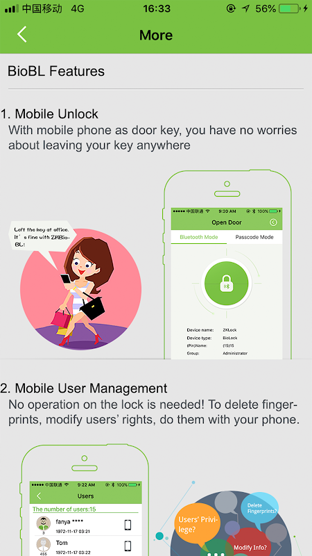 BioBL is door lock management software for mobile devices . which is compatible with Apple and Android phones. It is mainly used for door opening with mobile phones, user management and info review etc.