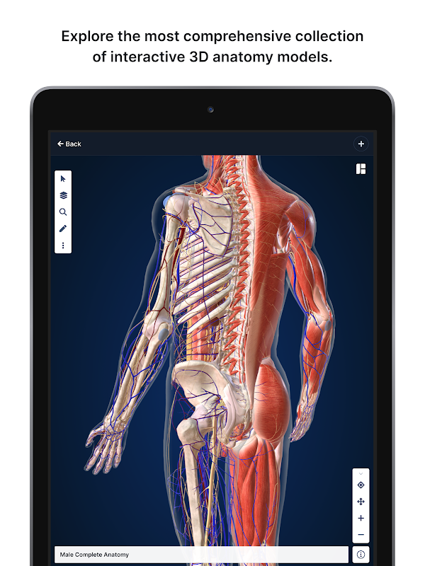 -画像ベースのアプリとは異なり、解剖学的構造をあらゆる視点から見ることができる真のインタラクティブ3D