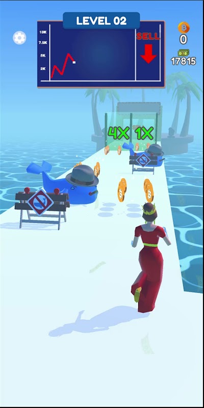 Collect Bitcoins, follow the market chart, trade. Try to use the options that will multiply your money and complete the parkour with the highest monetary value!