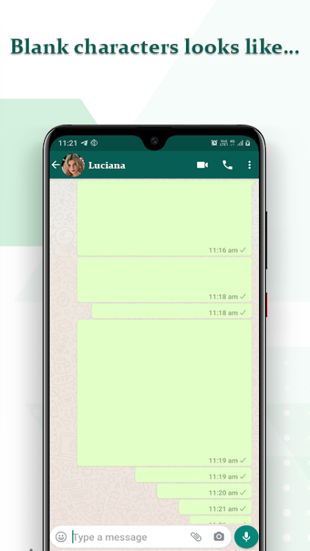 •whatappで空のメッセージを送信することはできませんが、whatappアプリの場合は空白のテキストでチャットしてください。