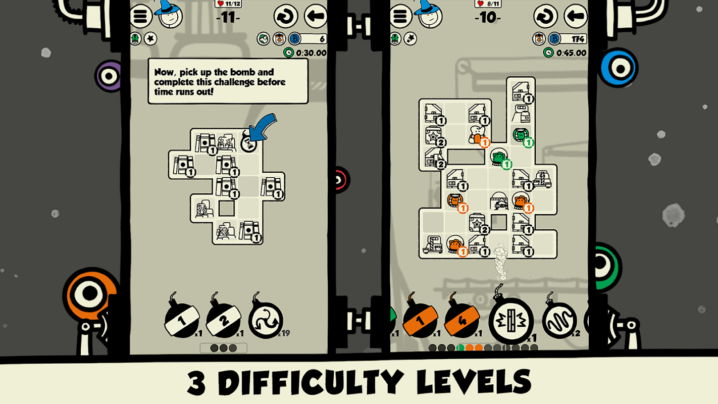 楽しくて遊び心のあるストーリーとユニークで抽象的なアートスタイルが特徴のこの脳に挑戦的な論理パズルゲームで、ブラストマンサーになりましょう。敵と色が合う特別な爆弾を使用して、宇宙に侵入している邪悪な歪みを爆破し、特別な世界で楽しいキャラクターに会い、スタイルショップの便利なアイテムの山をキャラクターに装備することで、その場にいる間、見栄えを良くします。