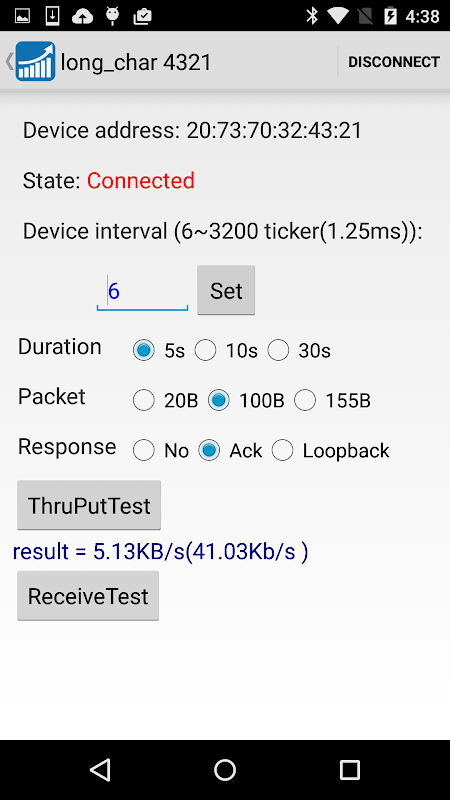 3. Packet size can be test up to 251 bytes