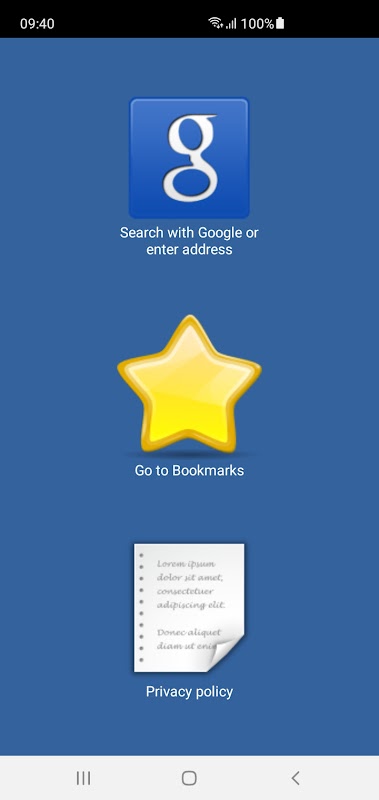 アプリはあなたが要求したウェブサイトのテキストを読み、それらを閲覧するために利用可能なすべてのリンクを一覧表示します。ブックマークを読み込んで保存することもできます。