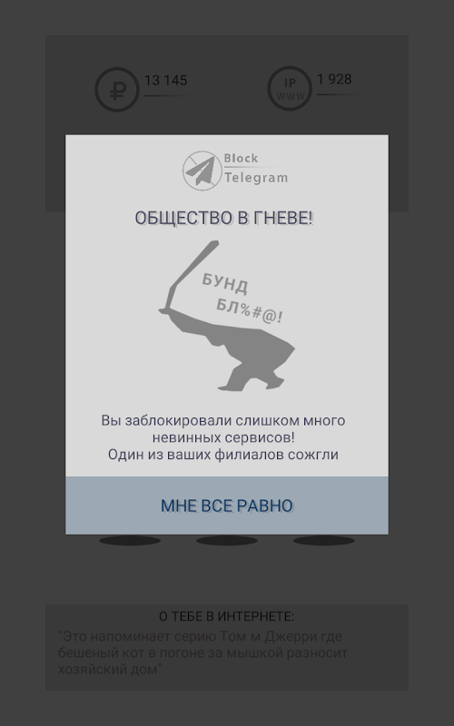В этой игре ты сможешь почувствовать себя главным блокиратором интернета и попробовать заблокировать самый популярный мессенджер в России.