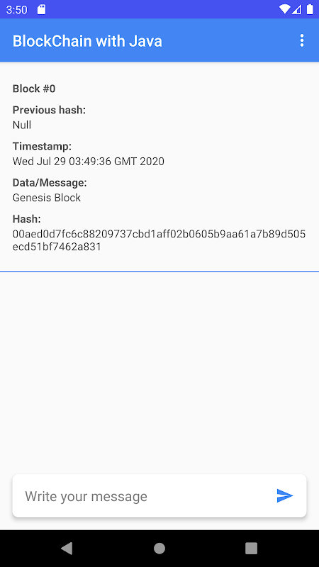 この携帯アプリは、BlockchainがJavaを使用してどのように機能するかを学ぶための例です。