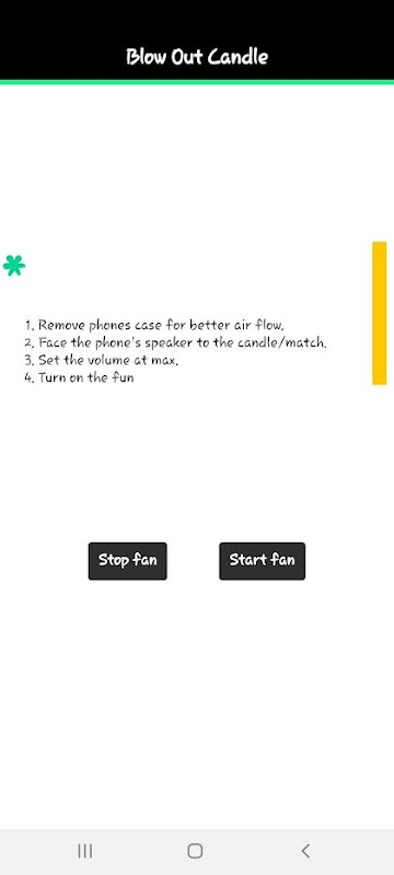 So.. How to blow out candle? 1. Download the b̳̿͟͞l̳̿͟͞o̳̿͟͞w̳̿͟͞ ̳̿͟͞o̳̿͟͞u̳̿͟͞t̳̿͟͞ ̳̿͟͞c̳̿͟͞a̳̿͟͞n̳̿͟͞d̳̿͟͞l̳̿͟͞e̳̿͟͞ app. 2. Remove phone's case for better air flow. 3. Set volume at max. 4. Face the phone's speaker to the candle/match.
