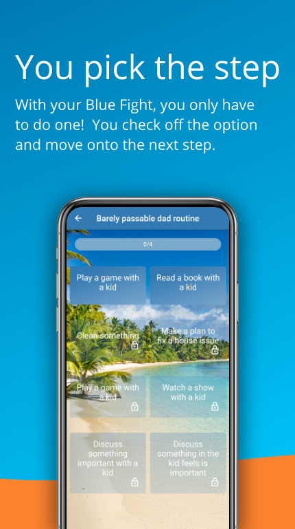 Find a challenge and knock out steps to achieve whatever matters to you. A Blue Fight is a simple and fun way to advance your goals.