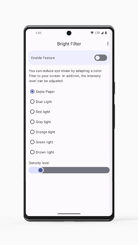 このアプリケーションを使用すると、デバイスの画面に表示される色を変更できます。本アプリ使用中は他のカラーフィルターアプリを使用しないでください。そうしないと、画面が暗くなりすぎるという問題に直面する可能性があります。