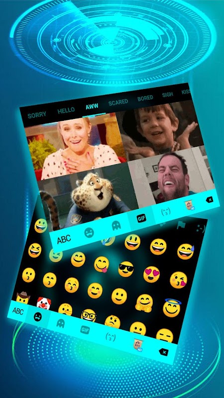 絵文字キーボード無料のためのブルーテックキーボードのテーマは、それを楽しんでください!