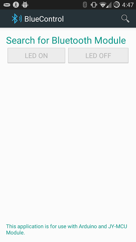 This is simple application is designed to control LED on Arduino via JY-MCU Module. The instruction on how to use the application and setup Arduino is on Instructables.