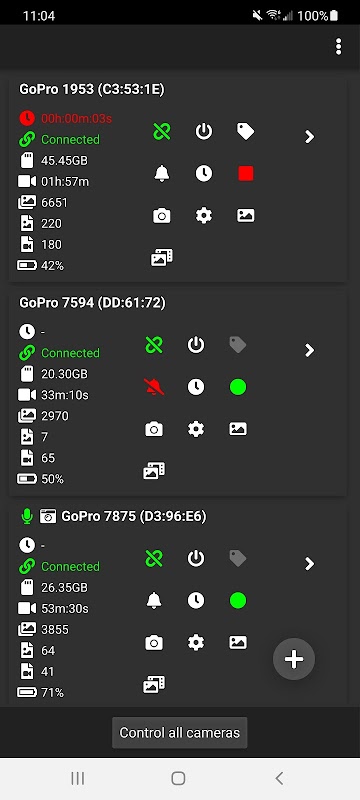 - Bluetooth経由の制御(複数カメラの制御に対応):Hero 5 Session、Hero 5/6/7/8/9/10/11/12/13、Fusion、Max。