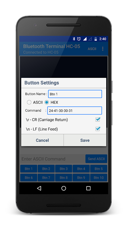 - デフォルトでは、データはASCII形式で送信され、それは長い、特定のボタンの押下から変更することができます。