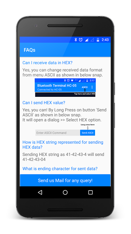 - あなたが簡単にあなたのハードウェアの問題をデバッグすることができますので、このアプリは、Bluetooth経由でコマンドを送受信することができます。
