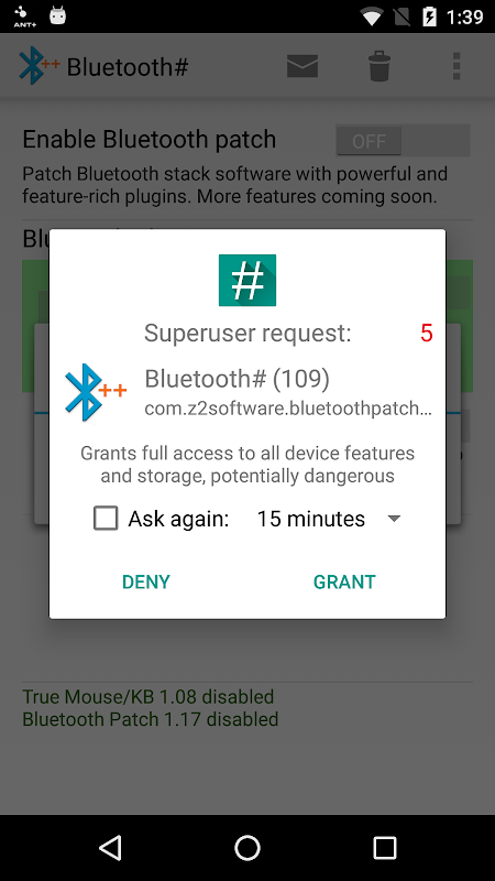 Require root permission and super user app. Your device needs to be rooted to patch android Bluetooth system. Support Android 4.2.2 ~ Android 7.1.2 and Lineage OS 14.1 201708?? for Android 7.1.2