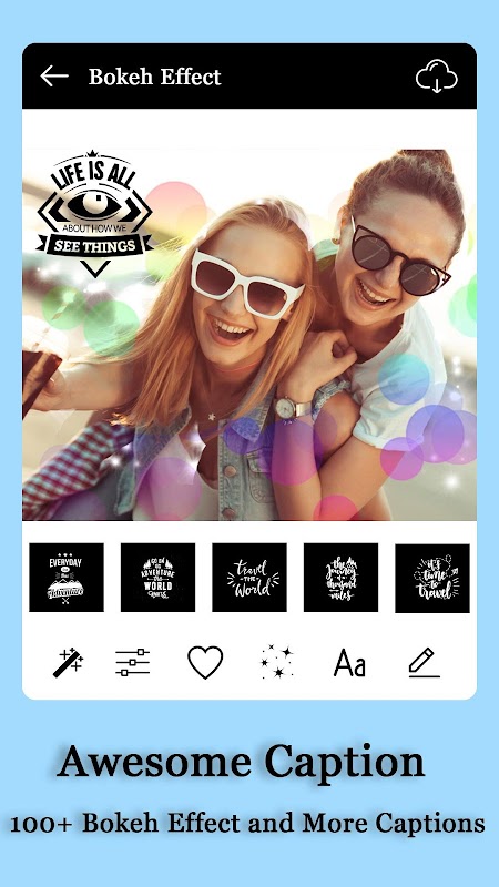 Auto background eraser, awesome bokeh effects, glitters, stickers, after focus