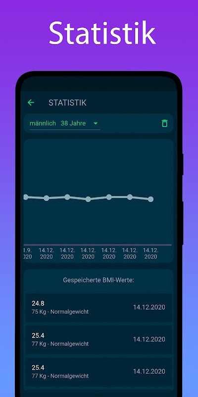 計算した値を BMI 計算ツールの統計に保存し、長期間にわたって追跡することができます。