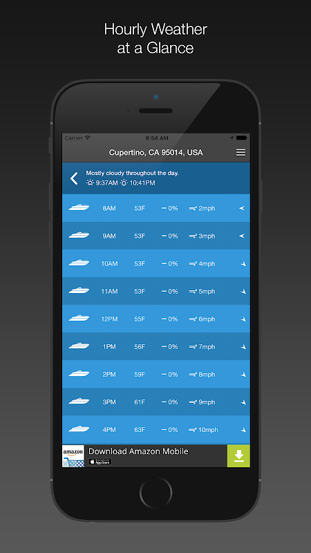 - Touch the daily weather forecast to get a detailed hourly weather forecast