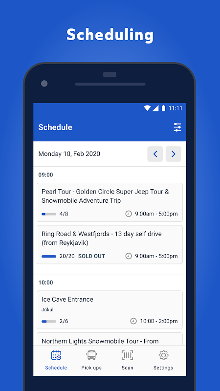 一日を準備し、ビジネスカレンダーを追跡します。スケジュールからガイドを追加または削除し、予約をすばやく簡単に処理します。