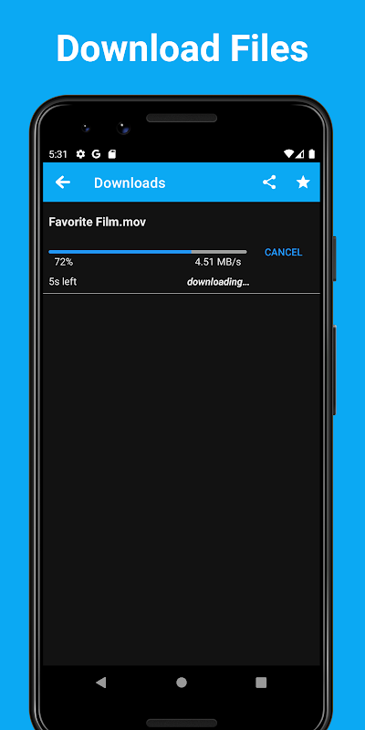 - ファイルをバックグラウンドでダウンロード。