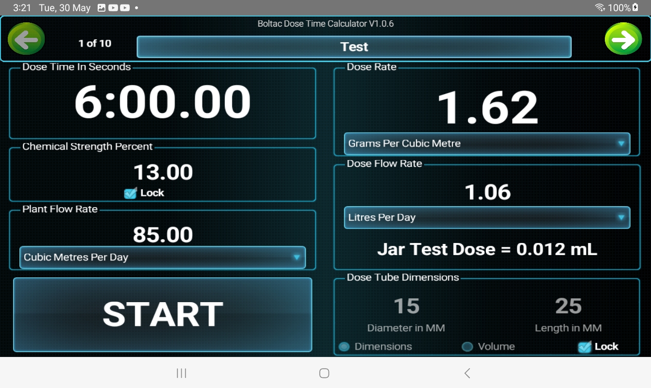 Jar Testingのための水処理投与時間計算機。